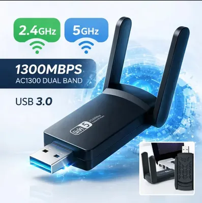 Adaptador Wi-Fi Turbo AC1300 Dual Band - Internet 10x Mais Rápida, USB 3.0 e Antena Dupla Ultra Potente