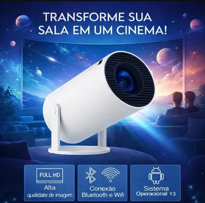 Smart Projetor Cinema Portátil 4K - Android 11 Integrado, Wi-Fi 6 e Rotação 180° (Transforme seu Teto em Cinema)