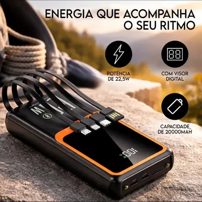 HyperCharge 20000mAh - Carga Rápida 22.5W e 4 Cabos Embutidos