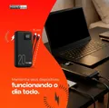 Power Bank 20000mAh com cabos integrados para carregar seus dispositivos onde estiver.