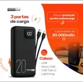 Carregador Portátil Power Bank 20000mAh com Cabos Integrados